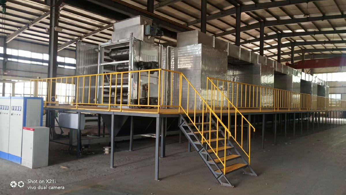 鏈網(wǎng)式污泥干化系統(tǒng)設備,由山東大學和山東省凱麟環(huán)保設備股份有限公司共同研發(fā)。該設備設計處理污泥60-100噸/天,適用于含水率60%的污泥干化至含水率30%的污泥顆粒,利用窯爐余熱對污泥進行系統(tǒng)干化脫水處理,在干化過程中不產(chǎn)生二次污染,同時干化后的污泥顆粒作為原料進行制磚,污泥含有一定熱量的有機物質(zhì),補充了高溫焙燒所需的熱量,降低了能源的消耗,真正達到污泥無害化、減量化和資源化利用的目的,是窯爐協(xié)同城市污泥資源化利用重要關鍵設備。
